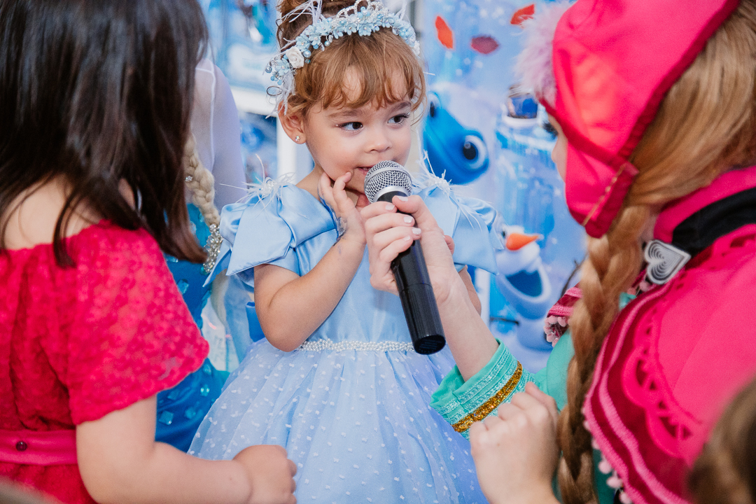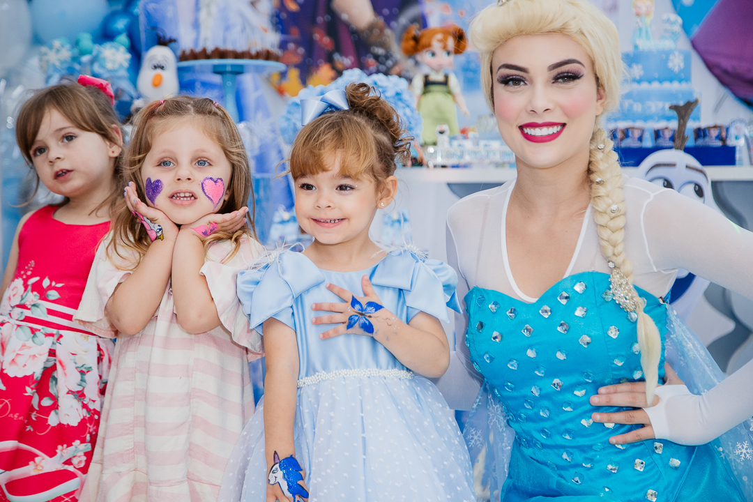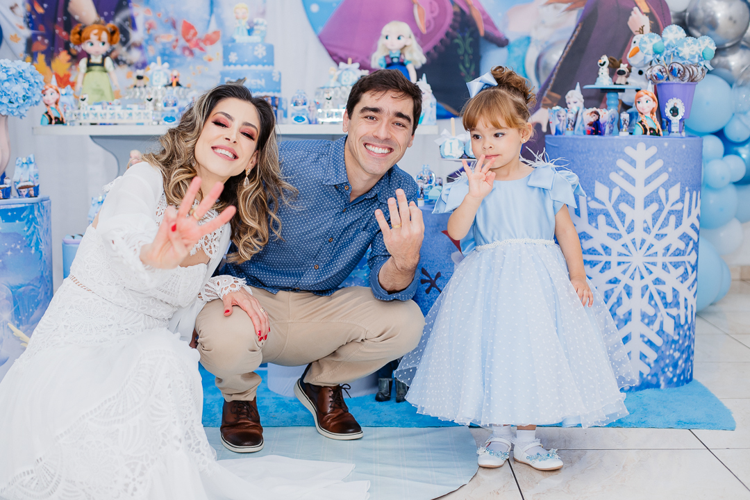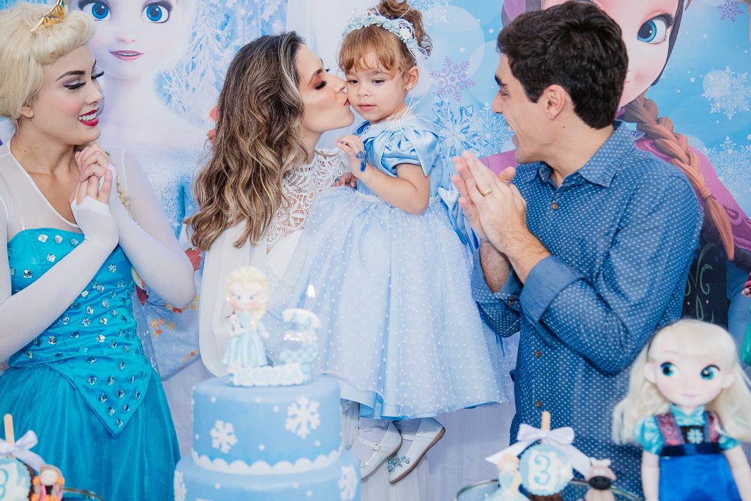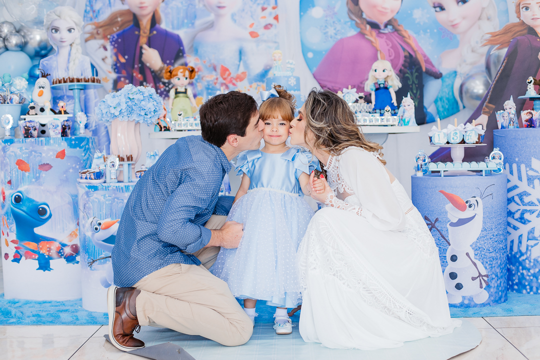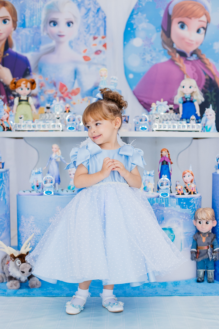 Uma linda princesa comemorou os seus 3 anos toda vestida de Frozen, mas enganam-se aqueles que pensam que a Isabela, com seus poderes mágicos, tenha congelado alguma coisa, muito pelo contrário. Ela, correu a festa toda, se divertiu, brincou nos brinquedos, dançou muito e distribuiu abraços e aqueceu o coração de todos os convidados.