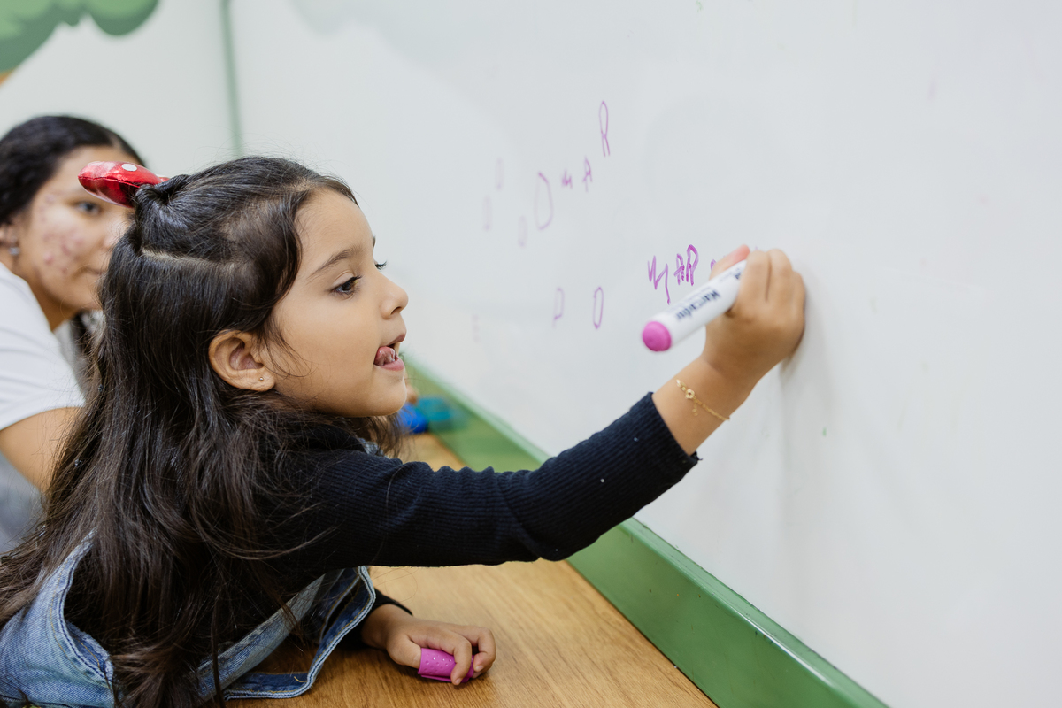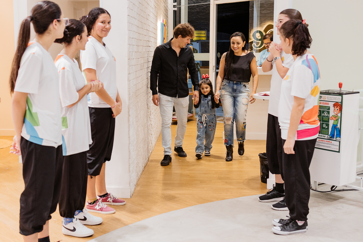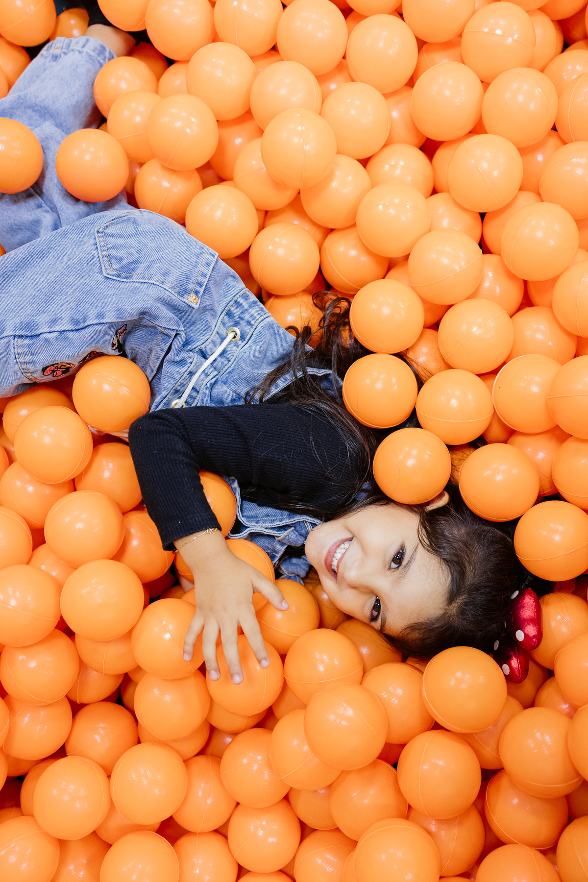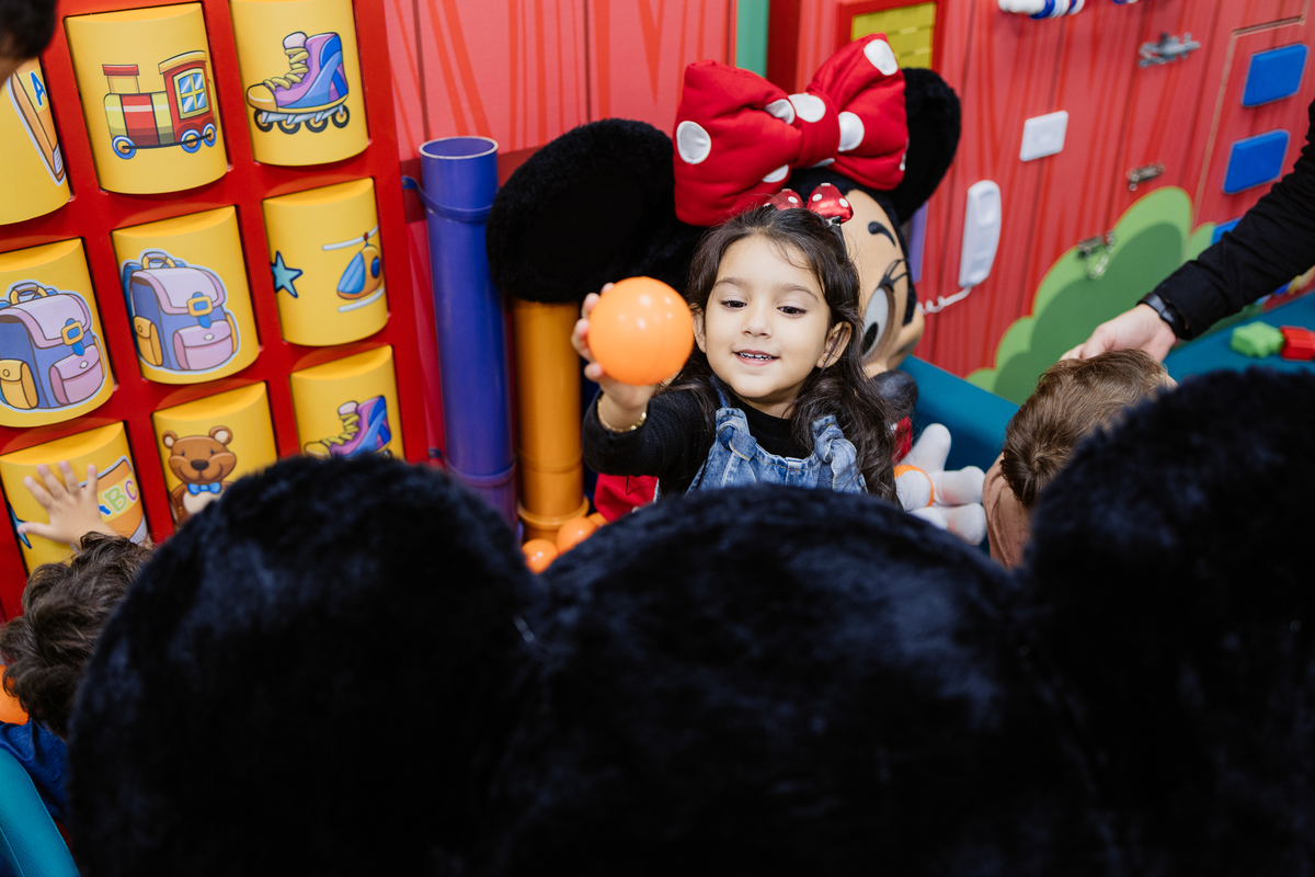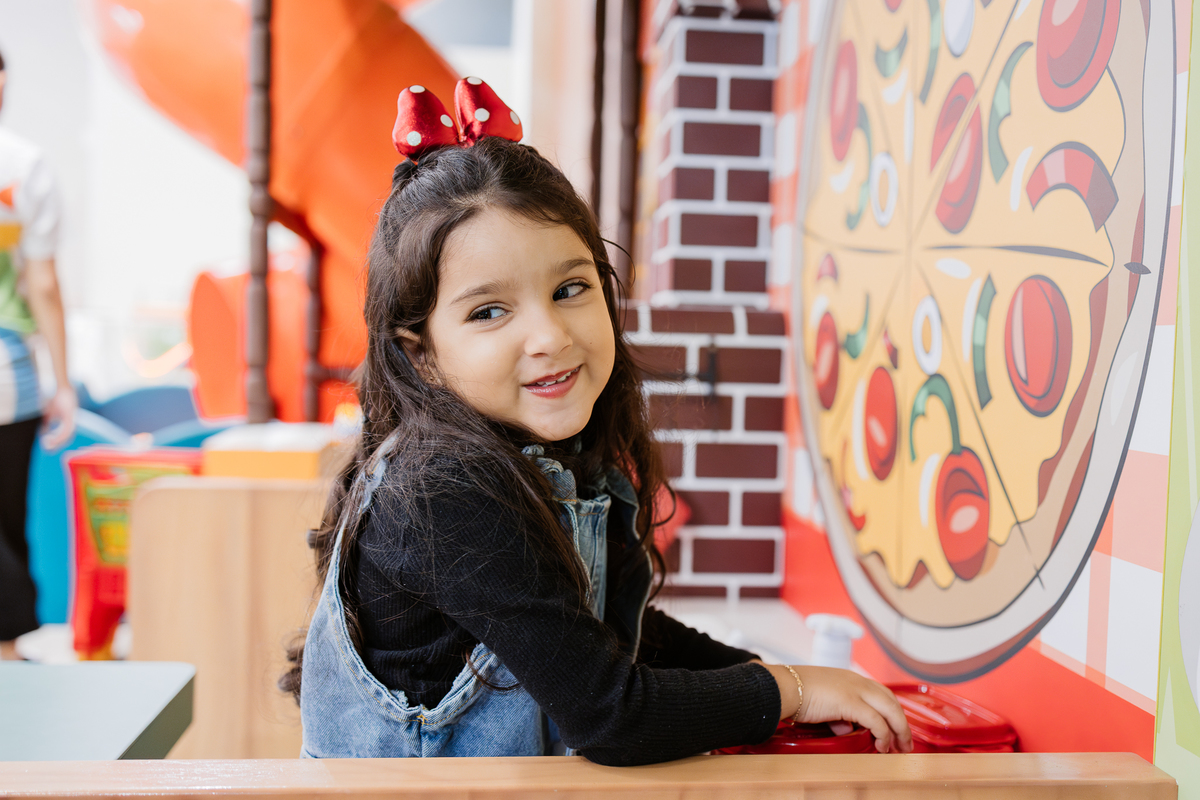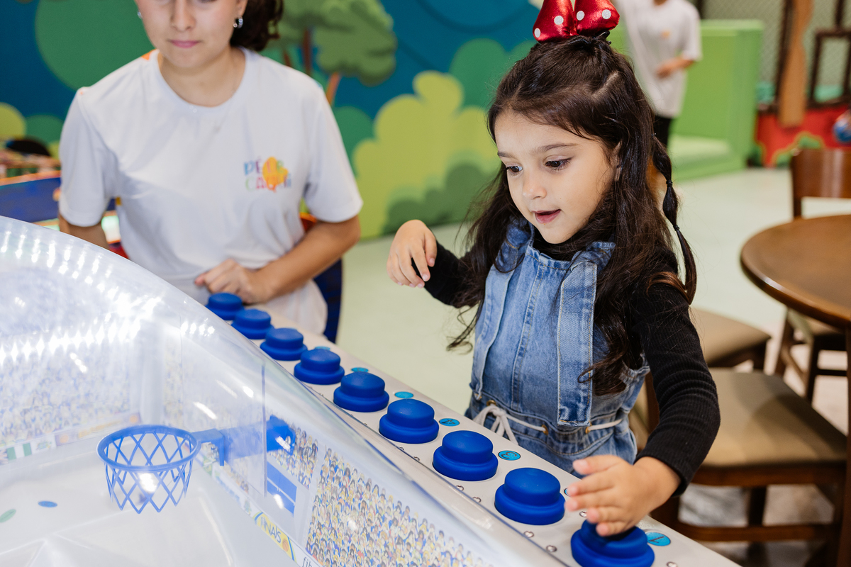 Ela explorou cada cantinho com alegria: escorregador, piscina de bolinhas, lousa para desenhar e escrever, e até slime ela fez! Foi uma noite de pura diversão, criatividade e sorrisos.