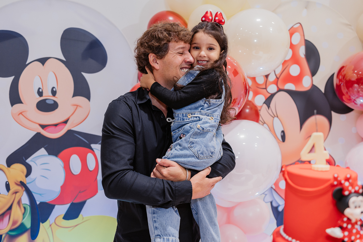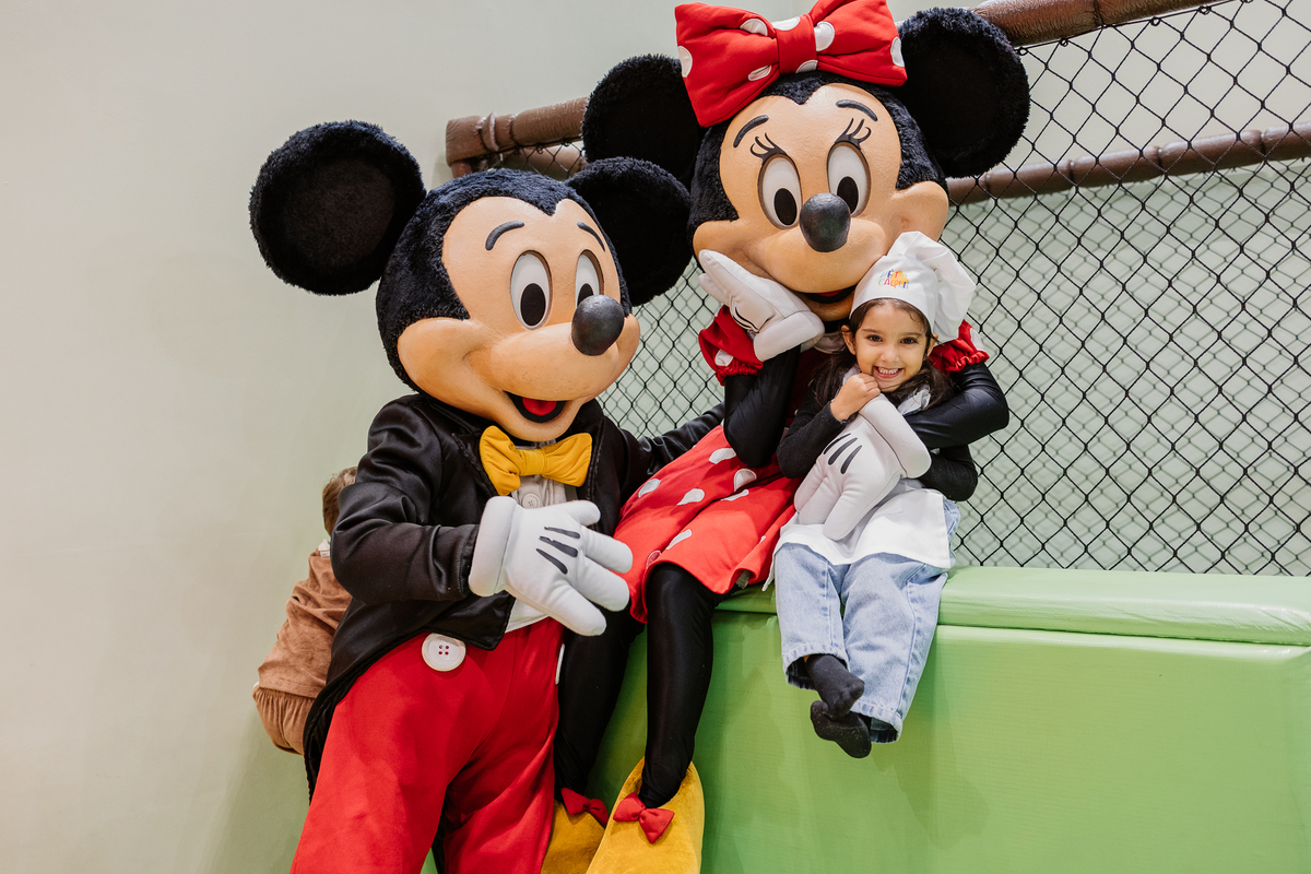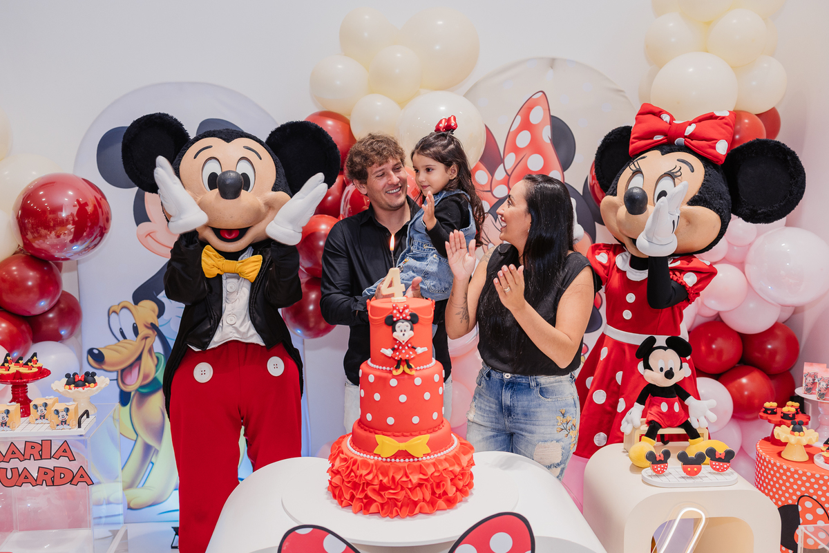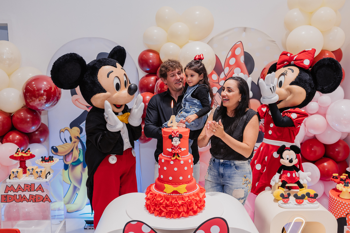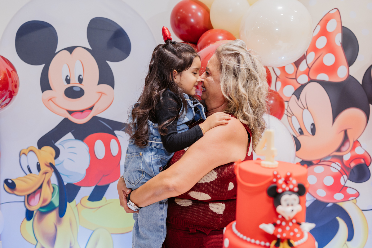 E antes do parabéns, um momento mágico: Mickey e Minnie apareceram de surpresa! Os olhinhos da Duda brilharam, e ela correu direto para um abraço cheio de emoção na Minnie. Foi lindo demais, um daqueles instantes que a gente guarda no coração.