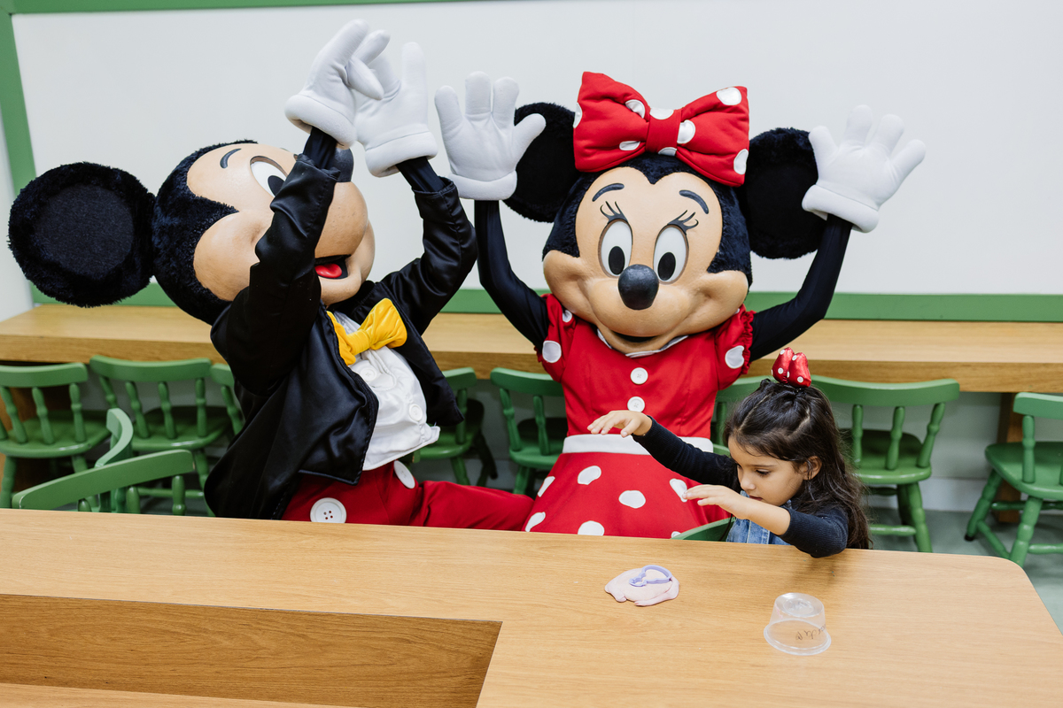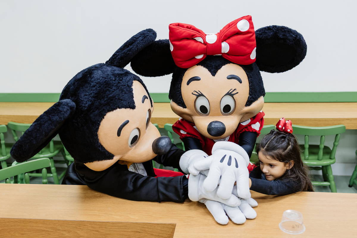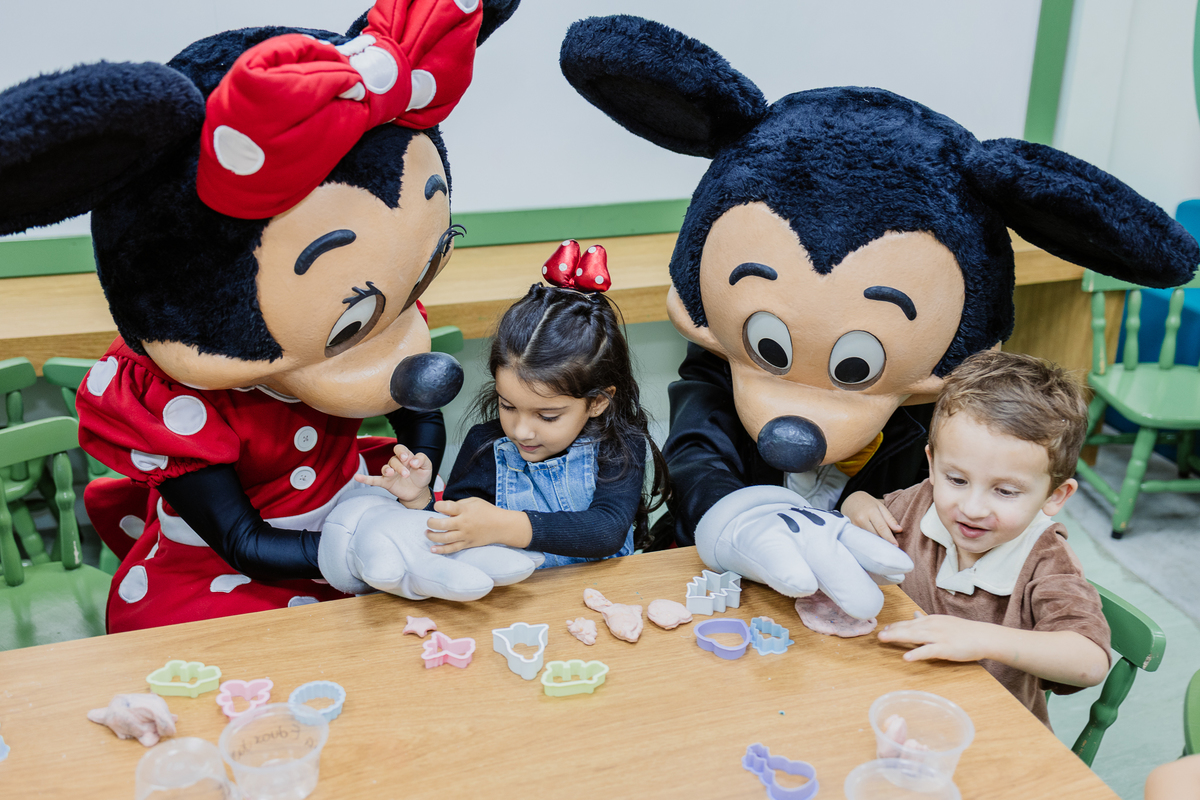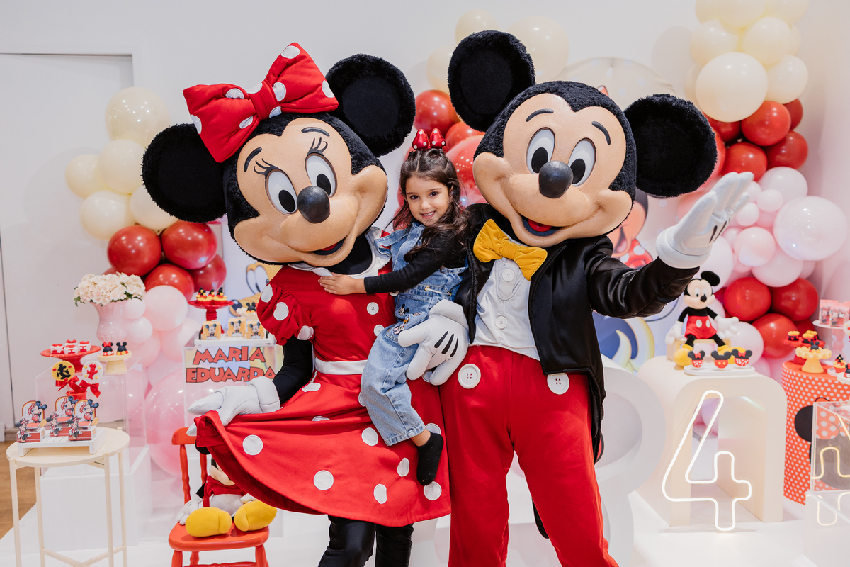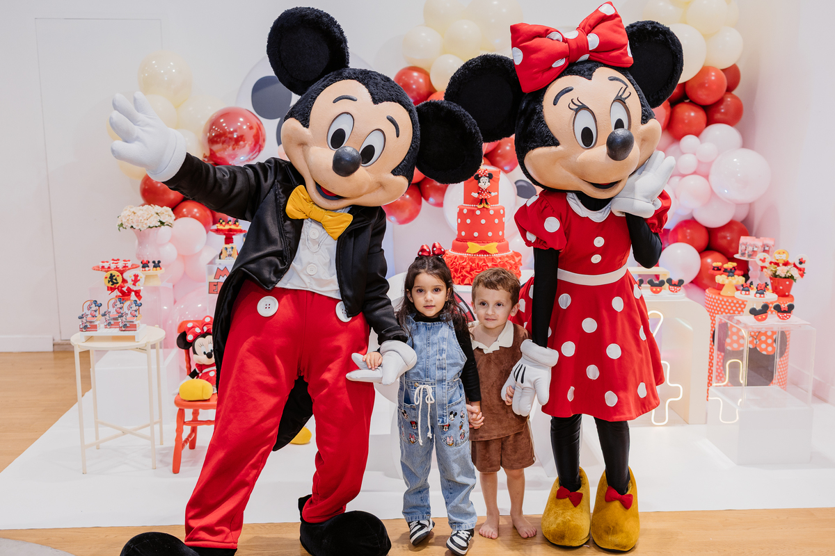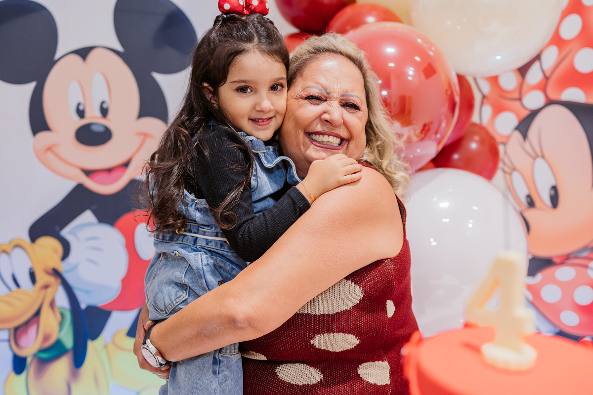 E antes do parabéns, um momento mágico: Mickey e Minnie apareceram de surpresa! Os olhinhos da Duda brilharam, e ela correu direto para um abraço cheio de emoção na Minnie. Foi lindo demais, um daqueles instantes que a gente guarda no coração.