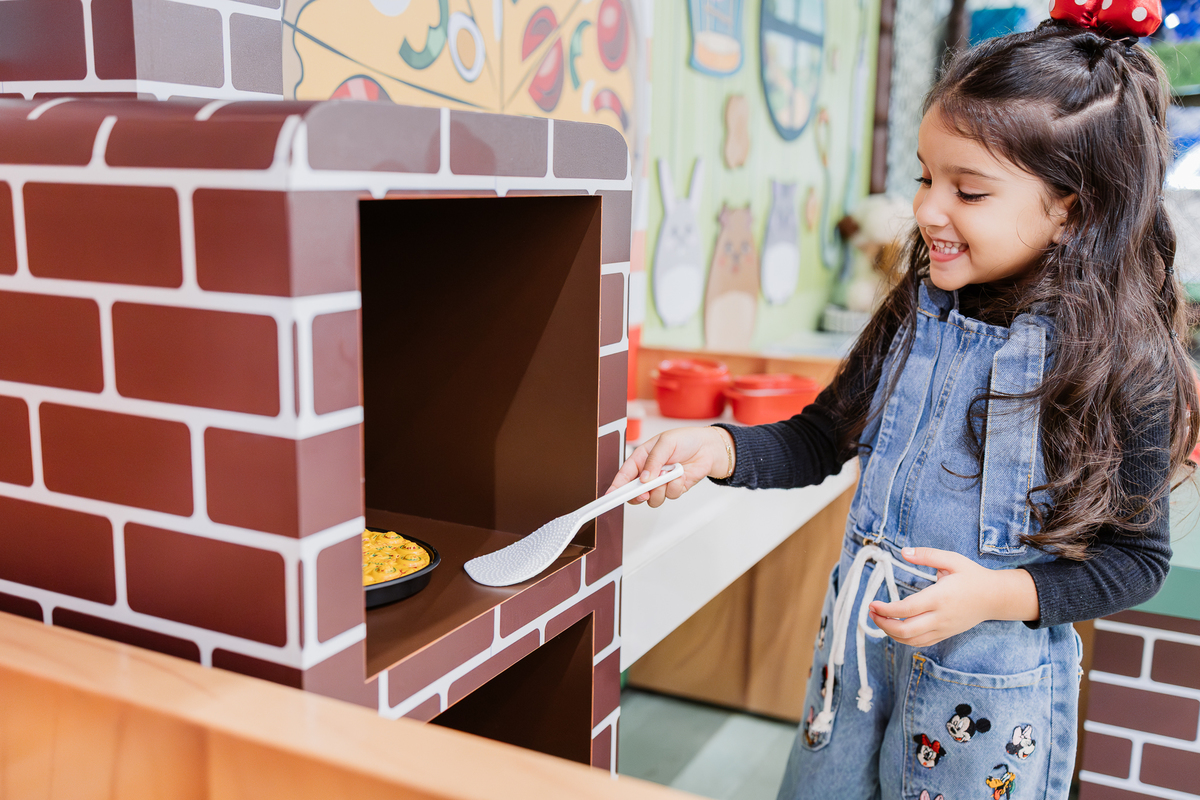Assim que chegou, a Duda correu para brincar de cozinhar. Me serviu um lanche de mentirinha e até preparou uma pizza! Mas segundo o amiguinho Romeo, ainda faltava ketchup, rs. 🍕