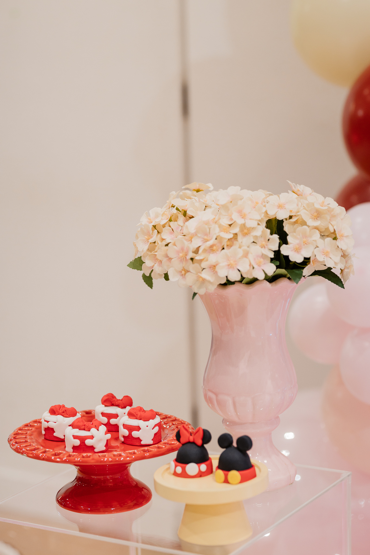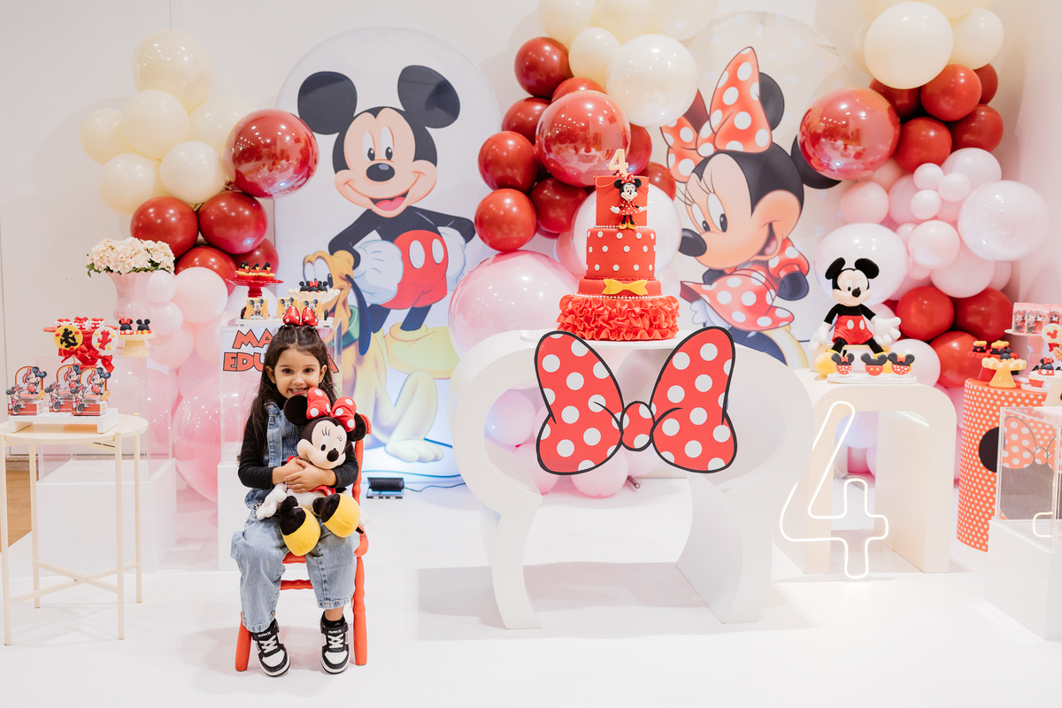 A decoração linda, no tema Minnie, foi assinada com muito amor e talento pela minha amiga Juliana, da Festa Sapeca. Cada detalhe escolhido com cuidado pela mamãe transformou o ambiente em um verdadeiro sonho rosa e vermelho.