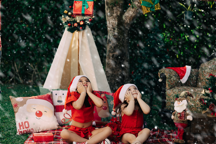 3 - O olhar das crianças sobre o Natal é único, mas a medida que crescem eles perdem um pouco desta magia. Então, meu conselho é você aproveitar ao máximo e fazer ensaios profissionais de quantas fases for possível.